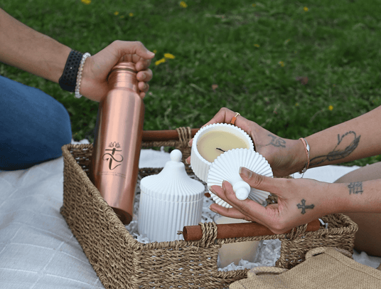 Crafted from 100% pure copper, the Jala bottle transforms everyday hydration into an Ayurvedic ritual. Inspired by the water element, it supports digestion, boosts immunity, and brings balance to your inner flow. Made by artisans, designed for conscious living